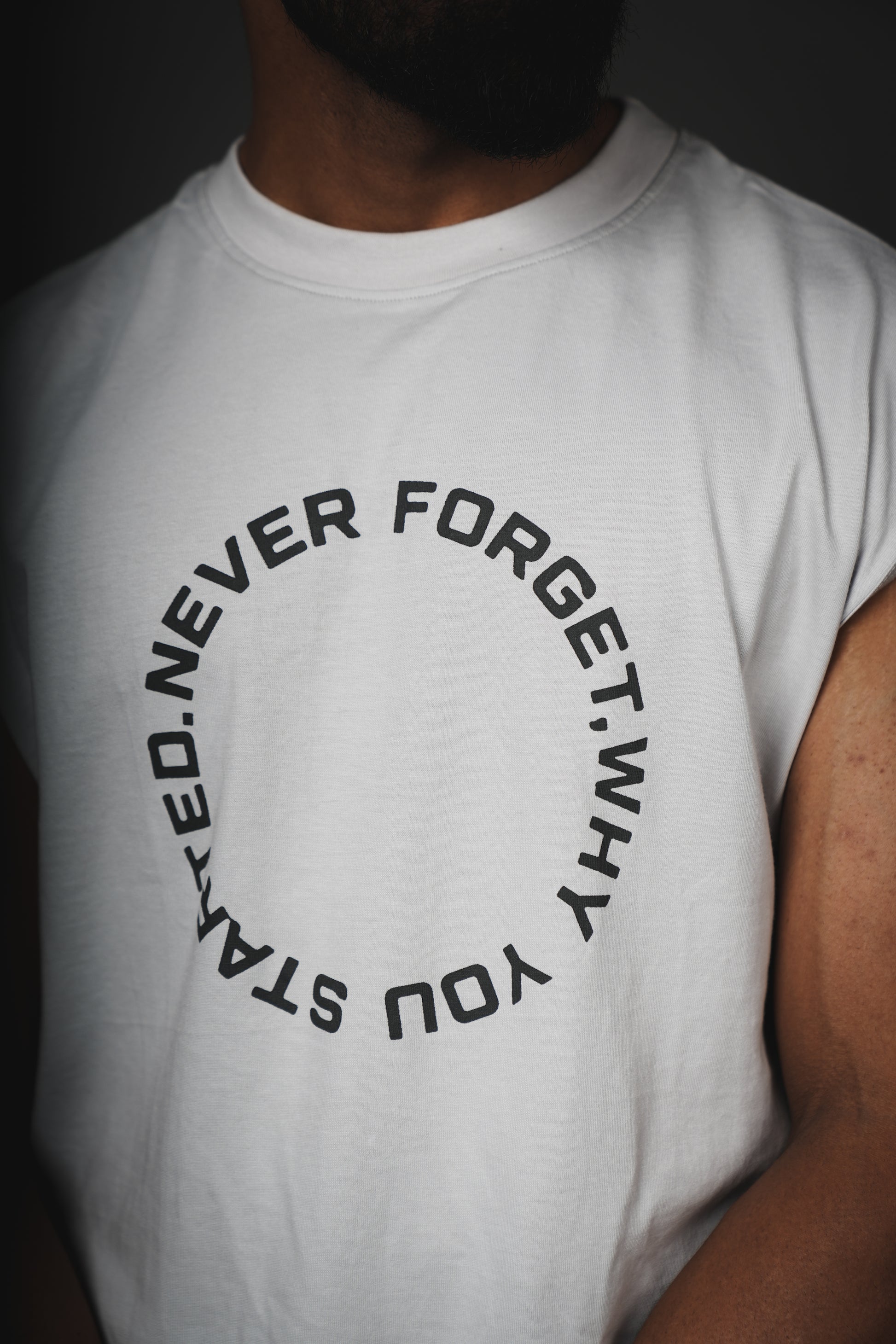 The front features a bold circular reminder – “Never forget why you started.”
